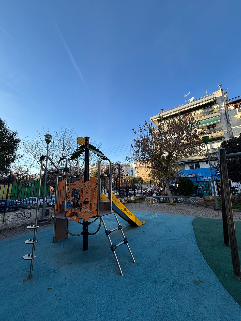 Μια μικρή, περιφραγμένη παιδική χαρά στο κέντρο της Άνω Τούμπας, ακριβώς δίπλα από το 101ο Δημοτικό Σχολείο. Παρότι δεν είναι μεγάλη, εξυπηρετεί πολύ καλά για μια σύντομη στάση μετά το σχολείο ή μια μικρή απογευματινή βόλτα. Η περιοχή έχει έντονη κίνηση γονιών και παιδιών, ενώ γύρω υπάρχουν καφέ, περίπτερο και mini market.